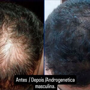 Relacionada à predisposição genética e alterações hormonais, causando afinamento progressivo dos fios e redução da densidade capilar.